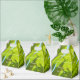 Think green with fresh greens. The long green leaves, in the original photograph by MaeFlowers on this gable style Favor Box are palm tree leaves blowing in the breeze. Sunlight highlights some of them, making them a light yellow green color. Others are darker green as they curve out from the tree branch, throwing lime green shadows on the leaves in the sun. Bits of tropical blue sky can be seen between the leaves. There is text which is set to personalize, or delete if you prefer.