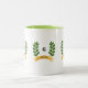Modern beautiful green leaves and golden ribbon on white Mug. Text can be personalized.