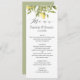 Elegant and romantic , this wedding dinner menu card design features a frame of watercolor olive green and yellow lemons and foliage.
