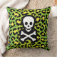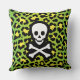 Green Leopard Print Jolly Roger Pirate Edgy Punk Throw Pillow