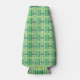 This bottle cooler has a mid-century modern design of green vertical lines with rectangles above, repeated over the design.