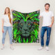 Green Lion Head Fleece Blanket - Lion Face Portrait Drawing - Lion Fleece Blanket by Tigazprint