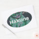 Green Lion with Pink Glasses "Hakuna Matata" Art Oval Sticker