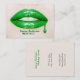 Green Lipstick Makeup Artist business card featuring glossy green lips and matching text. Bright and eye catching.