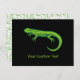 Green lizard icon with woodcut shading. Custom text. Seamless pattern at back side.