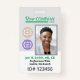 Bright green and white facility entry badge with a bar code on back is ideal for department specific clearance. Easily upload multiple logos and an employee photo. This can hang on a matching lanyard that also holds a company key card. This company badge is versatile for green, white and gray company lanyards. Perfect for engineering, healthcare, or law enforcement facilities where staff identification is important. Perfect for government buildings where employees have different clearances.
