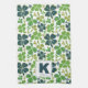 Green Lucky Shamrock Clover Pattern Monogrammed Kitchen Towel
