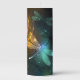 Flight of glowing, green, artistically drawn dragonfly with transparent green and yellow wings on glowing night background with marsh plants and fireflies. Glowing dragonfly.