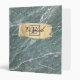 Green Marble,Gold Brush Stroke, Monogram 3 Ring Binder