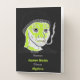 Customizable school pocket folder with image of green, martian style Wojak doomer on a black background. Name and class are customizable. The back of the folder is a mirror image of the front, with text printed backwards. For students of all ages, K-12, college