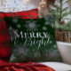 Green Merry and Bright Snowflakes Christmas Throw Pillow