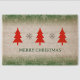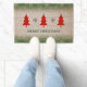 Welcome your guests with this charming, rustic "Merry Christmas" welcome mat. This festive mat features three classic red Christmas trees interspersed with delicate snowflakes, all centered over the bold red message, "MERRY CHRISTMAS." The durable, natural coir background is framed by a subtle border of faded red stars, adding a touch of vintage holiday charm. It's the perfect piece of farmhouse or traditional Christmas decor to place on your front porch or entryway to spread cheer throughout the season.
