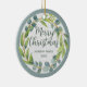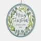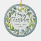 Green Merry Christmas Family Name Wreath Ceramic Ornament
