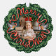 Green Merry Christmas Folk Foliage Wreath Photo Ornament Card