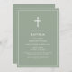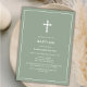 Green Minimalist Typography Cross Frame Baptism Invitation