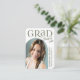 Simple mini size graduation announcement features modern typography and arch shape photo in sage green, elegant and fun, Custom it with your own photo and grad party information.