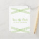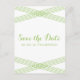 Simple and elegant Modern Deco Save the Date Postcard with a striped criss-cross hatched art deco design in green. This classic save the date postcard can be easily customized with your wedding details. For more customization options, click on the Customize It button.