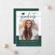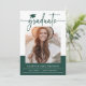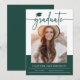 Green Modern Graduation Announcement. Celebrate your graduate’s achievements in style with this green and white graduation announcement, featuring a simple, minimalist, classic, modern layout. Designed in dark forest green and white, this announcement includes an elegant script that spells out "graduate" in hand-lettered calligraphy, perfectly paired with a cute illustrated graduation cap for a playful yet refined touch. The large photo layout allows you to showcase your graduate’s personality, while the clean lines and balanced typography keep the focus where it belongs. Whether displayed on the fridge or tucked into a keepsake box, this announcement makes a lasting impression. Make it uniquely yours—start personalizing your perfect announcement today.