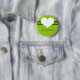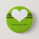 Sweet and charming Modern Heart Button featuring a chartreuse green background and a cute heart and striped border. This cute and girly button will add style to anywhere you pin it. Customize with the text of your choosing. Click on "Customize" to find additional personalization options.
