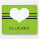 Sweet and charming Modern Heart Mousepad featuring a chartreuse green background and a cute heart and striped border. This cute and girly mousepad will add style to any workspace. Customize with the text of your choosing. Click on "Customize" to find additional personalization options.