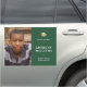 This custom graduation car magnet is the perfect way to share the news of your graduate's exciting achievement. The graduation magnet features a large photo on the left side and text on the right side. The white and gold typography design includes the graduate's name, school, and graduation year, topped with a gold graduation hat, all against a forest green background.
