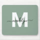 Personalized Sage Green Initial Monogram Mouse Pad. Add a touch of elegance to your workspace with this stylish mouse pad. Featuring a soft sage green background, a crisp white initial letter, and a sleek black script name, this design is perfect for anyone who loves a clean and modern yet calming look. Ideal for sorority sisters, students, or professionals, this mouse pad makes a thoughtful gift for moms, friends, or anyone who appreciates personalized, chic accessories. Perfect for birthdays, holidays, or special occasions, it blends elegance and functionality to elevate your everyday workspace essentials.