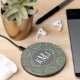 Elevate your tech with our Monogram Wireless Phone Charger, featuring simple minimalist typography and a sleek green and grey pattern. This monogrammed charging pad combines a minimal contemporary design with bold lettering style for a modern and personalized look. The stylish circle geometric design adds a touch of unique creative charm, making it both chic cute whimsical and functional. This charger is a standout addition to your workspace or bedside table, perfect for those who love fun tech accessories.