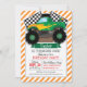 Green Monster Truck, Checkered Flag; Orange Stripe Invitation
