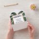 Designed with vibrant green monstera leaves and soft, complementary typography, this invitation is perfect for botanical, tropical, or destination weddings.