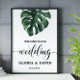 Green Monstera Leaf design. This Wedding welcome poster template combines two size of font for more dynamic look.