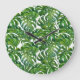 Green Monstera Leaves Tropical Seamless Large Clock