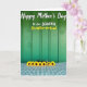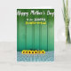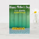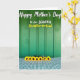 Designed with a tall, vertical layout, the card shows a deep green, wood-paneled wall filling the upper portion like a cozy backdrop. Across this green surface, a short Mother’s Day message sits prominently, with white lettering paired with bright yellow words for contrast ❤️. Below, a green-and-white checkered tablecloth stretches across the bottom, adding a homey kitchen-table feel. Right where the wall meets the table, a neat row of golden, dark-centered flowers runs horizontally, their faces turned forward like they’re leaning in together. Tucked just behind the flowers and table edge, small figures peek out, including a baby’s face with a soft, curious expression that suggests a close family bond. The lighting looks warm and gently glowing, making the greens feel rich and the yellows feel sunny 🌼. The message is centered in the upper area, while the flowers form a bright band above the checkered cloth at the bottom.