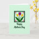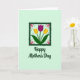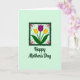 Designed with a calming mint green background, this card features a dark green rectangular frame with a slightly uneven, natural-looking border that feels gently imperfect in a sweet way. Inside the frame, three blossoms stand close together like friends leaning in: a rich purple flower in the center, flanked by two golden-yellow flowers that angle slightly toward it. Slender green stems and broad leaves rise from the bottom, giving the bouquet a soft, uplifting posture that reads as affectionate and close-knit ❤️. Around the flowers, small rose-pink petal shapes are scattered, while dark curling tendrils loop through the space as if a light breeze is passing by. Beneath the framed illustration, the words “Happy Mother’s Day” sit centered in dark green lettering, placed just below the border for an easy-to-spot greeting 🌼. The lines stay smooth and simple, with strong color areas that keep everything clear and easy on the eyes. Tiny rose-pink petal dots and curling dark green flourishes decorate the interior corners of the frame.