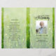 Beautiful and professional Funeral Program template with Green nature Bakcground, easy to edit and print.