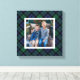 This festive plaid Christmas holiday wall art canvas features a custom square family photo space framed by a classic navy blue, hunter green, and black watch Scottish tartan plaid pattern background. Photo tip: crop your photo to a square shape prior to upload.