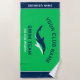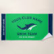 Vibrant green and navy make this swim team beach towel a standout on the pool deck. Features editable club name, Swim Team text, mascot name, and a dolphin logo placeholder that can be swapped with your own team graphic. The swimmer's name runs vertically along the side. All text and colors are fully customizable for any school or club. A bold team spirit accessory perfect for meets and summer swim leagues.