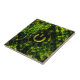 Green neon fire swirling design. Swirls of glowing green neon fire with a power symbol (IEC 5009 symbol) in the center. Over black. Geek nerd coaster for the man cave or LAN party.