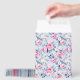 Aesthetic shabby chic white flowers and vintage pastel pink roses in a seamless pattern with a light blue background.