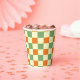 Green Orange Brown Checkered Gingham Pattern Paper Cups