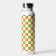 Green Orange Brown Checkered Gingham Pattern Water Bottle