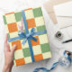 Green Orange Brown Checkered Gingham Pattern Wrapping Paper