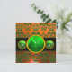 GREEN ORANGE DAMASK ,SHAMROCK MONOGRAM black Invitation