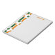 This soccer themed notepad features 3 team color soccer balls with green, orange and white panels overlying vertically oriented green and orange varsity stripes on the left edge - coach's name is customizable - by katz_d_zynes