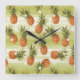 Green Orange Tropical Pineapple Fruit Pattern Square Wall Clock
