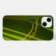 Close-up photography of palm fronds contrasted by sunlight and shadow creates a vibrant green natural abstract phone case. This iPhone case has the beautiful botanical Tropical Vibe of palm trees and you can personalize with your Name.
