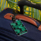 Features a green tropical palm leaf design. Personalize with a name on the front, and a name and address on the back.