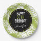 Green Palm Leaves Rainforest Pattern Birthday Paper Plates