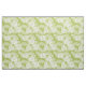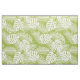Fabric with a repeating pattern of large palm leaves on an olive green background. Trendy modern and tropical.