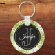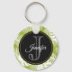 Green Palm Leaves Rainforest Pattern Monogram Keychain