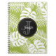 Green Palm Leaves Rainforest Pattern Monogram Notebook